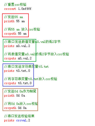 在大部分的应用场景下,crc校验仅仅是将printh改成crcputh,prints改为crcputs