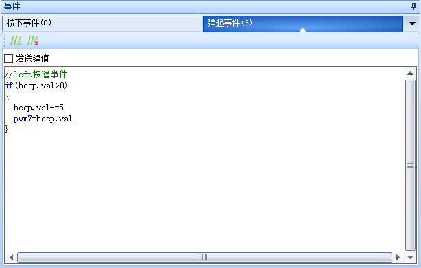 在 up 按键中编写如下代码(建议把代码写到弹起事件中,避免首次进入时触发,下同)
