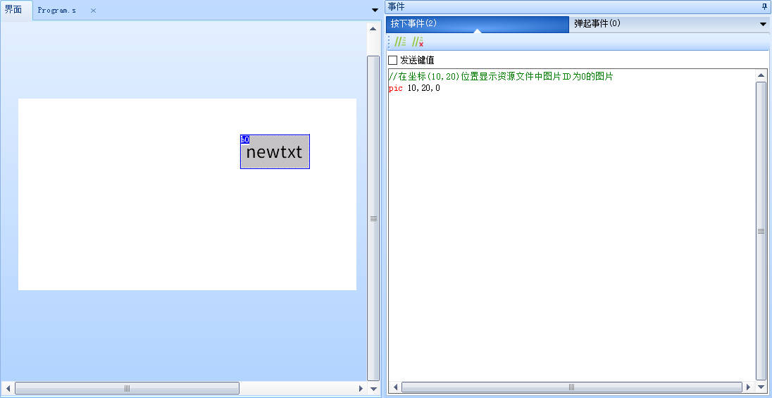 //在坐标(10,20)位置显示资源文件中图片ID为0的图片